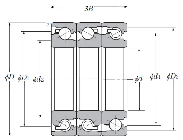Triple-Row Angular Contact Thrust Ball Bearings for Ball Screws